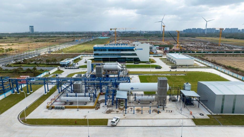 岚泽在盐城的一期项目为制备30万吨绿色甲醇作为航运燃料。通过秸秆等生物质,加入中国科学院上海高等研究院研发团队研制的高性能催化剂,进行合成。项目配套动力站来保证供电的稳定性。